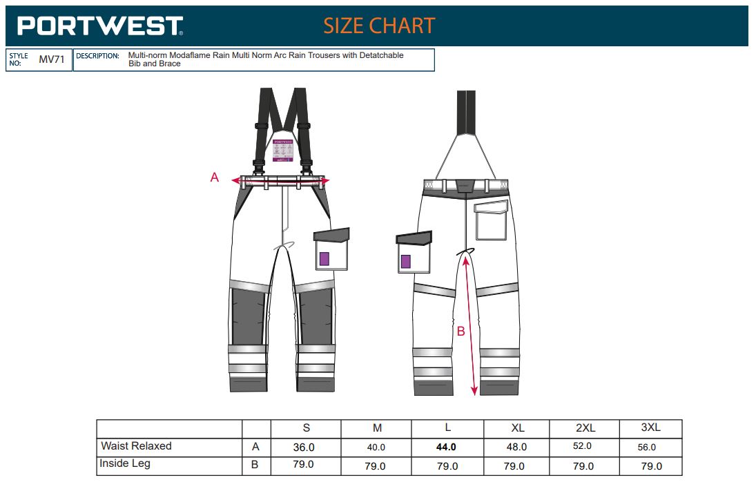 Product Datasheet - https://documents.portwest.com/datasheet.php?style=MV71&lang=GB&itemcol=MV71ONR&facility=902